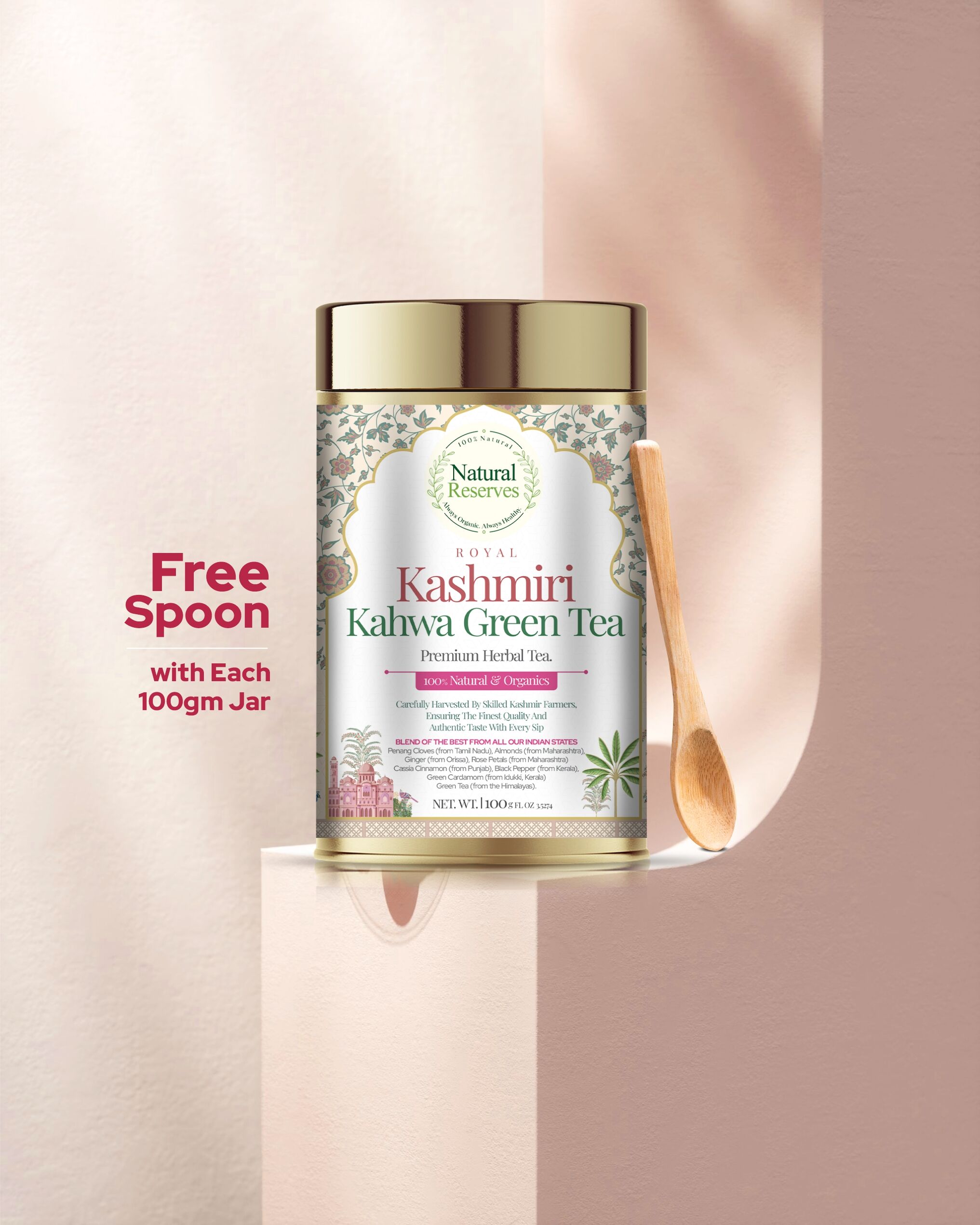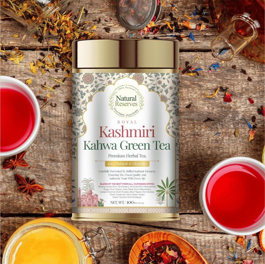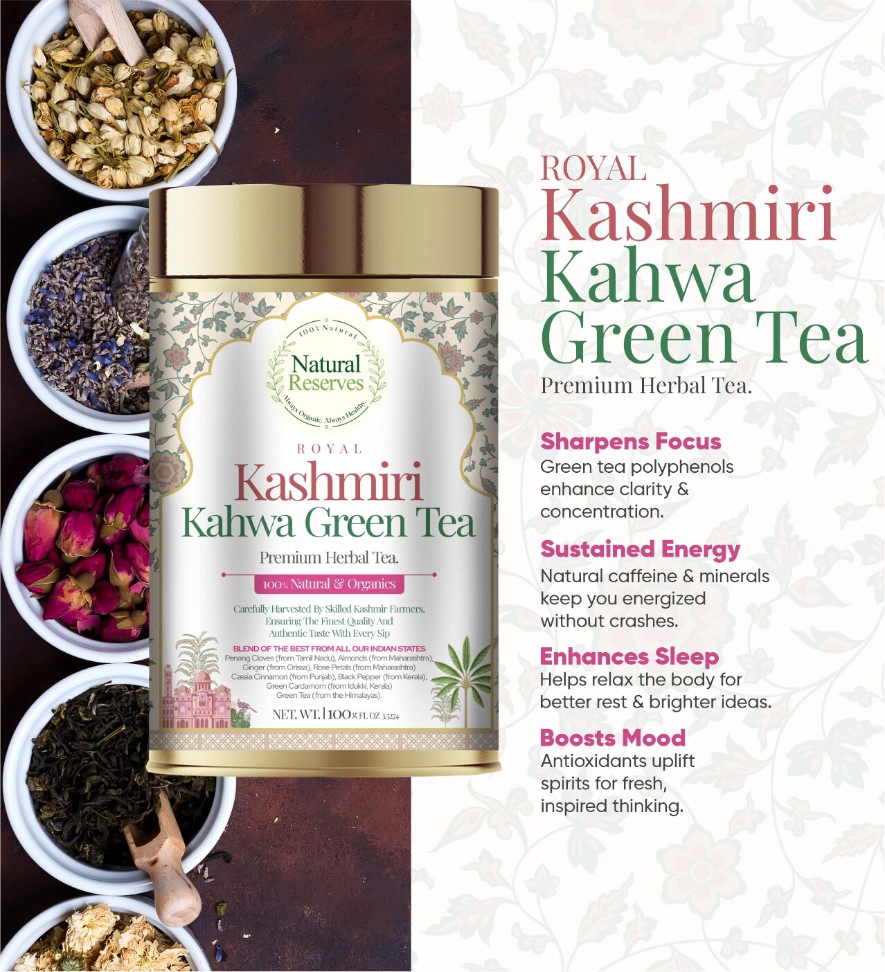 Experience the timeless tradition of Kashmiri tea culture with Natural Reserves Kashmiri Kahwa Green Tea. A luxurious blend of premium green tea and aromatic spices, our Kahwa offers a delightful taste of Kashmir in every sip.