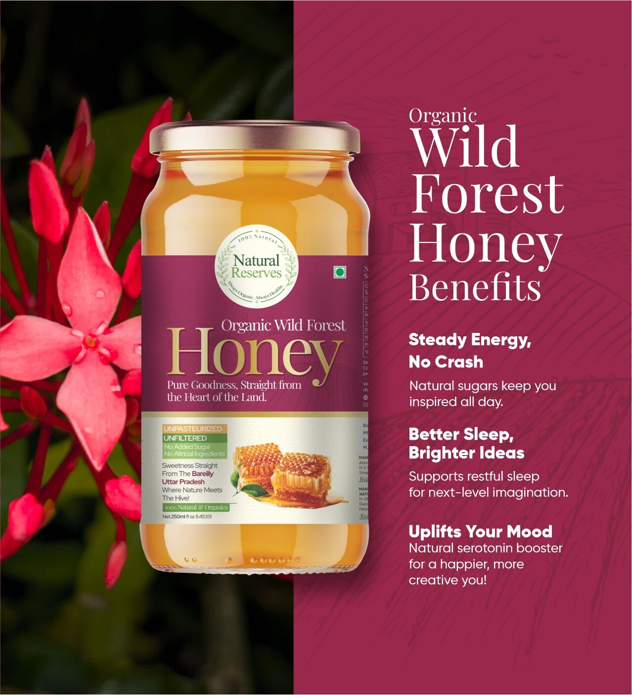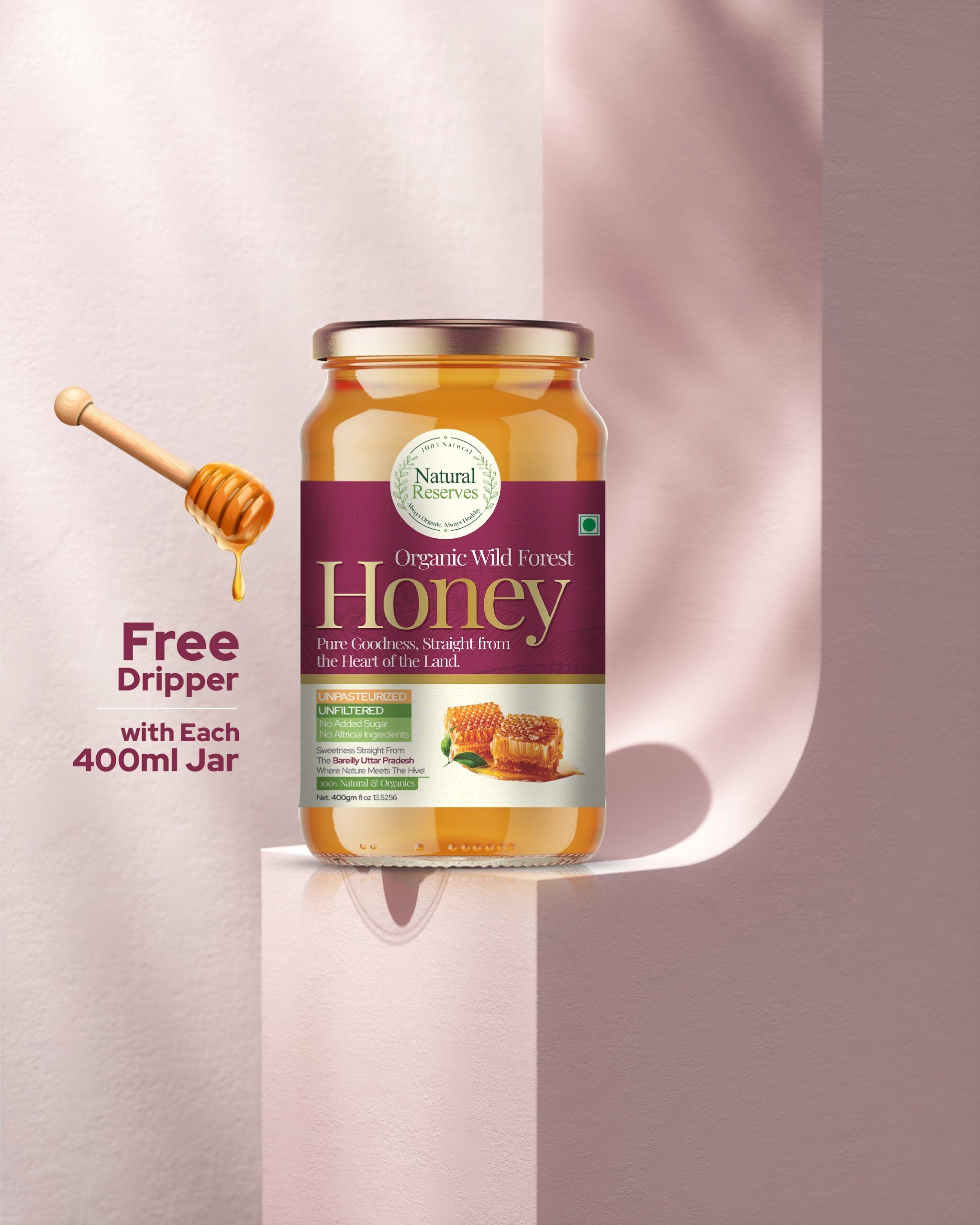 Crafted with love and reverence for the land, our Wild Forest Honey offers a taste of nature's purest bounty. From the heart of untouched forests, bees gather nectar from vibrant wildflowers and sun-ripened fruits, creating a rich, golden honey that captures the spirit of the wild. With every drop, experience the perfect balance between nature’s beauty and the care of mankind, a sweet harmony that's as authentic as it is unforgettable.